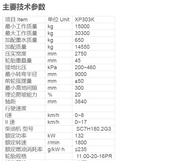 XP303K型輪胎壓路機(jī)是根據(jù)市場(chǎng)要求而產(chǎn)生的大噸位輪胎壓路機(jī),它以充氣輪胎為工作裝置對(duì)輔層材料施以壓實(shí),主要適用于瀝青路面、基礎(chǔ)層、次基礎(chǔ)層、大壩及填方工程等得壓實(shí)作業(yè),是建設(shè)高等級(jí)公路、機(jī)場(chǎng)、港口、堤壩及工業(yè)建筑工地的理想壓實(shí)設(shè)備。