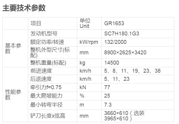 GR1653平地機主要用于公路、機場、農田、等大面積的地面平整和挖溝、刮坡、推土、松土、除雪等作業(yè)。是國防工程、礦山建設、城鄉(xiāng)道路等建筑施工和水利建設、農田改良等必須的工程機械。